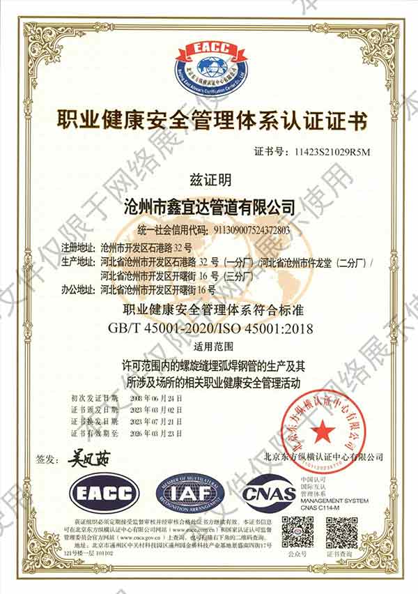 滄州市鑫宜達(dá)管道有限公司成立于2003年7月,坐落于滄州經(jīng)濟(jì)開發(fā)區(qū),占地面積40萬平方米,注冊資金1.81億元,是集螺旋鋼管生產(chǎn)、防腐加工以及無縫鋼管、卷板、帶鋼等品類鋼材經(jīng)營銷售于一體的工貿(mào)型企業(yè)。公司現(xiàn)有員工400多人,其中,中高級(jí)技術(shù)職稱的人員達(dá)120余名。 滄州市鑫宜達(dá)管道有限公司擁有9條螺旋鋼管生產(chǎn)線和3PE防腐生產(chǎn)線,可生產(chǎn)直徑219--3640mm,壁厚5.5--28mm,最高鋼級(jí)X100的各種規(guī)格防腐螺旋鋼管...